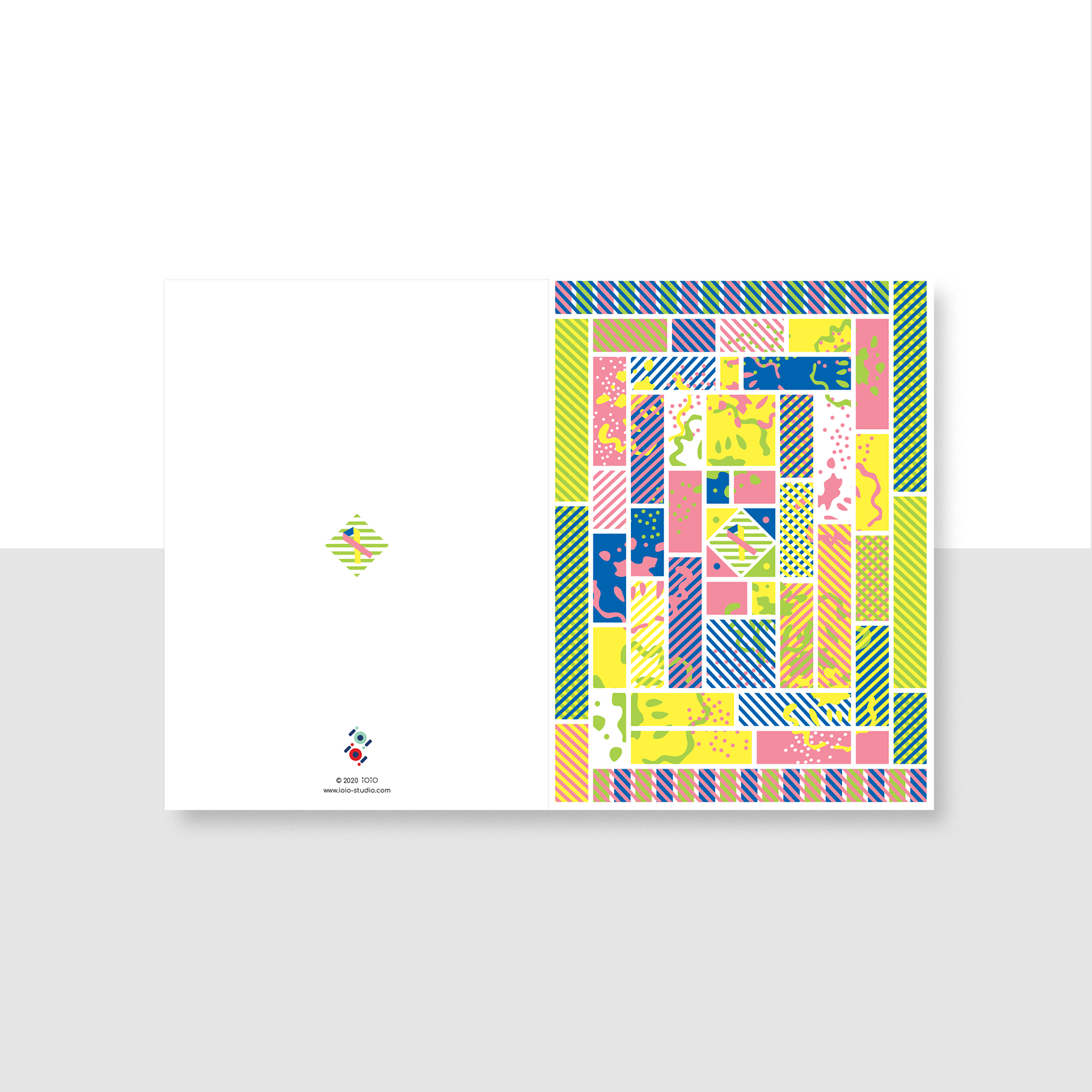 우리나라의 보자기 조각보에서 영감을 받아 디자인한 그리팅 카드입니다. 다양한 색상을 만나보세요.